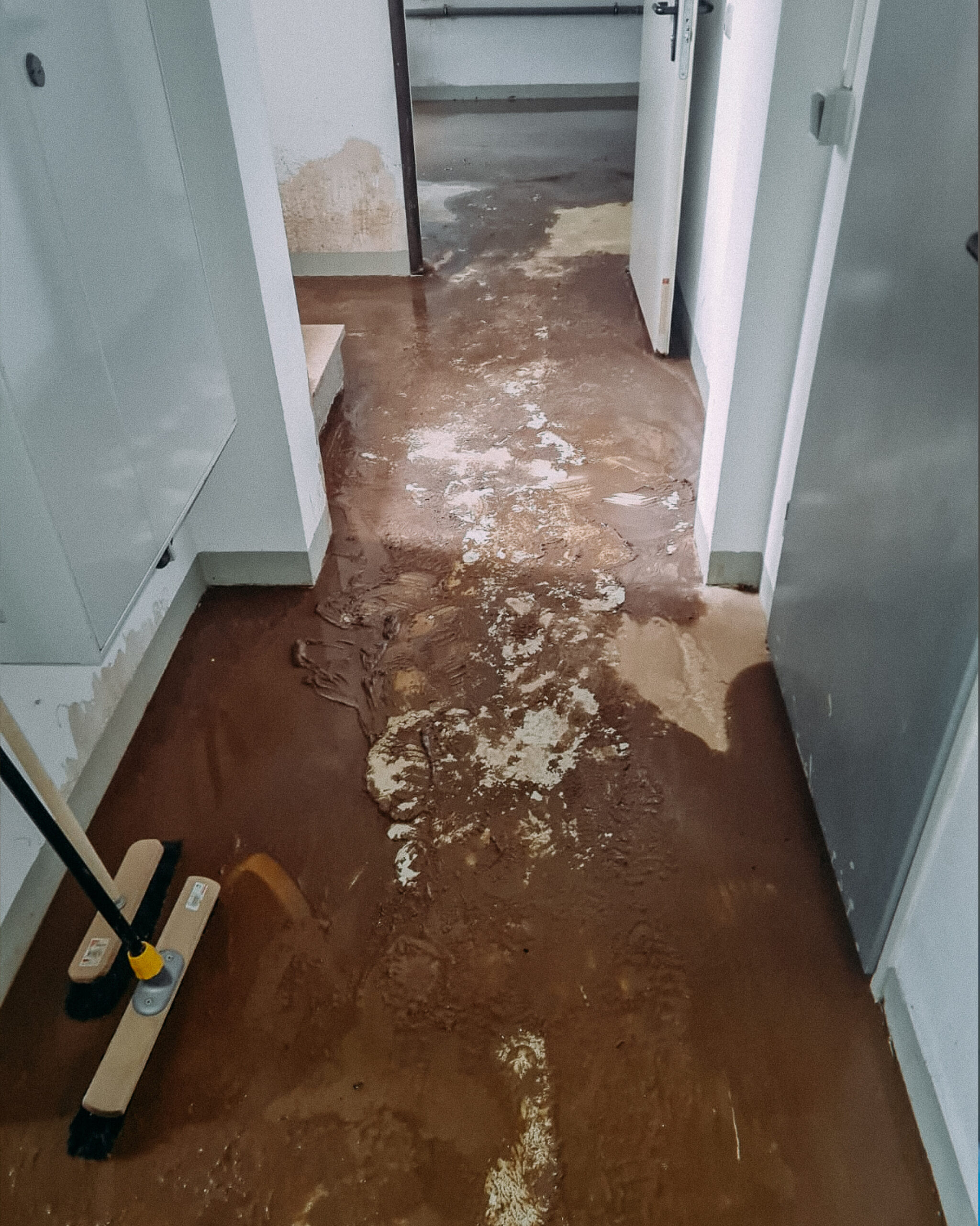 Ergebnis: Ein komplett verschlammtes Treppenhaus und ein Keller, der mehr nach Schlammbad als nach Wohnraum aussah.